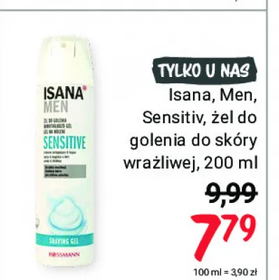 Cena produktu r贸偶ni si臋 w zale偶no艣ci od wybranego sklepu. Niestety nie posiadamy danych o aktualnych promocjach, jednak w艣r贸d archiwalnych ofert 呕el do golenia Isana for men sensitiv kosztuje od 7,79 z艂.