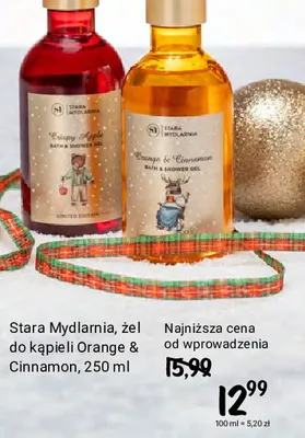 Cena produktu różni się w zależności od wybranego sklepu. Niestety nie posiadamy danych o aktualnych promocjach, jednak wśród archiwalnych ofert Żel do kąpieli orange & cinnamon Stara mydlarnia kosztuje od 12,99 zł.
