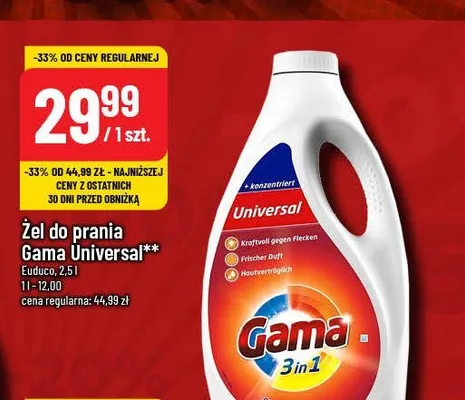 Cena produktu r贸偶ni si臋 w zale偶no艣ci od wybranego sklepu. Niestety nie posiadamy danych o aktualnych promocjach, jednak w艣r贸d archiwalnych ofert 呕el do prania 3in1 universal Vizir gama kosztuje od 29,99 z艂 do 39,99 z艂.