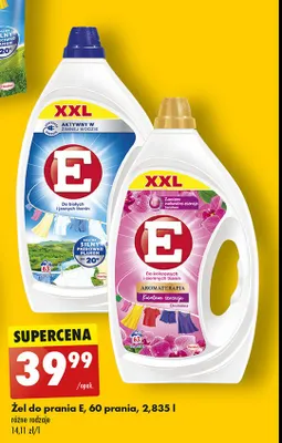 Cena produktu różni się w zależności od wybranego sklepu. Niestety nie posiadamy danych o aktualnych promocjach, jednak wśród archiwalnych ofert Żel do prania białych i jasnych tkanin E kosztuje od 27,99 zł do 39,99 zł.