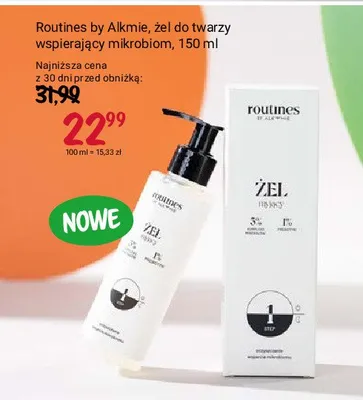 Cena produktu r贸偶ni si臋 w zale偶no艣ci od wybranego sklepu. Niestety nie posiadamy danych o aktualnych promocjach, jednak w艣r贸d archiwalnych ofert 呕el do twarzy Routines kosztuje od 22,99 z艂.