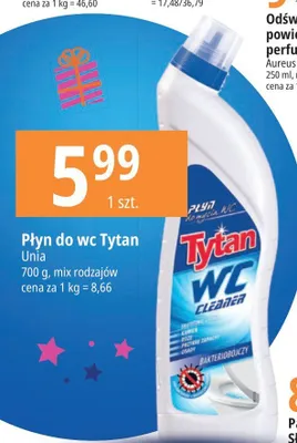 Cena produktu r贸偶ni si臋 w zale偶no艣ci od wybranego sklepu. Niestety nie posiadamy danych o aktualnych promocjach, jednak w艣r贸d archiwalnych ofert 呕el do wc bakteriob贸jczy niebieski Tytan wc kosztuje od 5,99 z艂 do 6,99 z艂.
