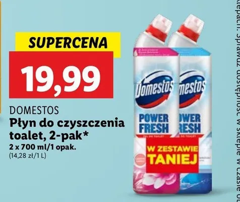 Cena produktu różni się w zależności od wybranego sklepu. Niestety nie posiadamy danych o aktualnych promocjach, jednak wśród archiwalnych ofert Żel do wc floral + ocean Domestos power fresh (wcześniej total hygiene) kosztuje od 19,99 zł do 21,99 zł.