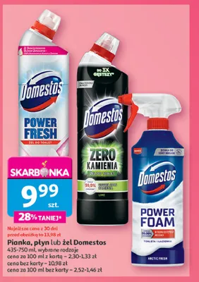 Cena produktu różni się w zależności od wybranego sklepu. Niestety nie posiadamy danych o aktualnych promocjach, jednak wśród archiwalnych ofert Żel do wc ocean fresh Domestos power fresh (wcześniej total hygiene) kosztuje od 9,99 zł do 11,99 zł.