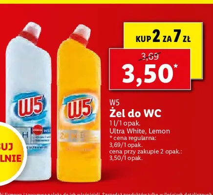 Cena produktu r贸偶ni si臋 w zale偶no艣ci od wybranego sklepu. Niestety nie posiadamy danych o aktualnych promocjach, jednak w艣r贸d archiwalnych ofert 呕el do wc ultra white W5 kosztuje od 3,5 z艂.