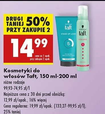 Zastanawiasz si臋, gdzie kupi膰 i ile kosztuje produkt 呕el do w艂os贸w TAFT STAND UP? Regularnie sprawdzamy, czy jest promocja na ten produkt w Biedronka, Lidl, Kaufland, Auchan, Netto, Makro i innych sklepach. Aktualnie posiadamy 1 ofert臋 promocyjn膮 na ten produkt. Ceny zaczynaj膮 si臋 od 13,99z艂!