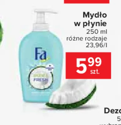 Cena produktu r贸偶ni si臋 w zale偶no艣ci od wybranego sklepu. Niestety nie posiadamy danych o aktualnych promocjach, jednak w艣r贸d archiwalnych ofert 呕el jasmin & cocout water Fa natural & fresh kosztuje od 5,99 z艂.
