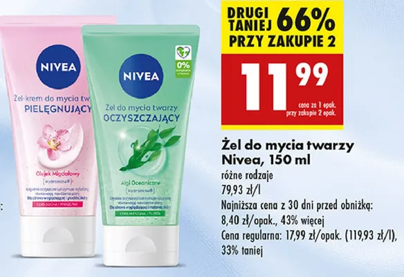 Cena produktu różni się w zależności od wybranego sklepu. Niestety nie posiadamy danych o aktualnych promocjach, jednak wśród archiwalnych ofert Żel-krem do mycia twarzy cera sucha i wrażliwa Nivea face essentials kosztuje od 9 zł do 15,99 zł.