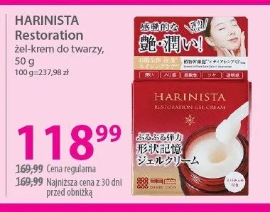 Cena produktu r贸偶ni si臋 w zale偶no艣ci od wybranego sklepu. Niestety nie posiadamy danych o aktualnych promocjach, jednak w艣r贸d archiwalnych ofert 呕el-krem do twarzy Harinista restoration kosztuje od 118,99 z艂 do 139,99 z艂.