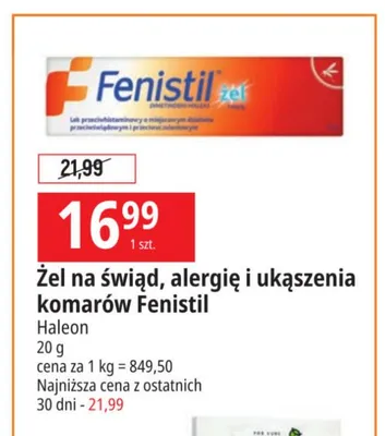 Cena produktu różni się w zależności od wybranego sklepu. Niestety nie posiadamy danych o aktualnych promocjach, jednak wśród archiwalnych ofert Żel łagodzący po ukąszeniu Fenistil żel kosztuje od 16,99 zł do 24,99 zł.