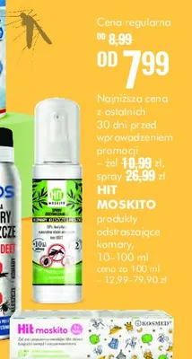 Cena produktu różni się w zależności od wybranego sklepu. Niestety nie posiadamy danych o aktualnych promocjach, jednak wśród archiwalnych ofert Żel łagodzący ukąszenia dla dzieci Hit moskito kosztuje od 7,99 zł.