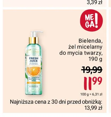 Cena produktu różni się w zależności od wybranego sklepu. Niestety nie posiadamy danych o aktualnych promocjach, jednak wśród archiwalnych ofert Żel micelarny nawilżający z sokiem z pomarańczy Bielenda kosztuje od 11,99 zł.