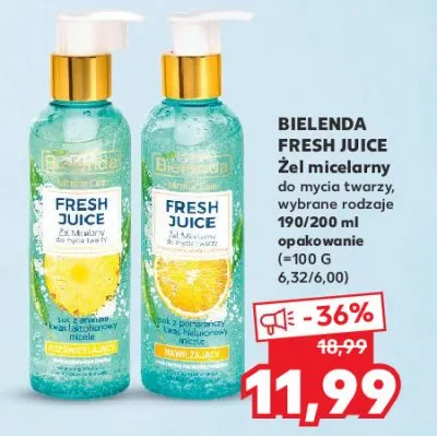 Cena produktu różni się w zależności od wybranego sklepu. Niestety nie posiadamy danych o aktualnych promocjach, jednak wśród archiwalnych ofert Żel micelarny rozświetlający z sokiem z ananasa Bielenda kosztuje od 11,99 zł.
