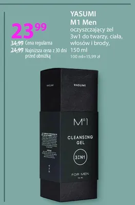Cena produktu różni się w zależności od wybranego sklepu. Niestety nie posiadamy danych o aktualnych promocjach, jednak wśród archiwalnych ofert Żel oczyszczający do mycia twarzy 3 in 1 Yasumi m no 1 kosztuje od 18,99 zł do 23,99 zł.