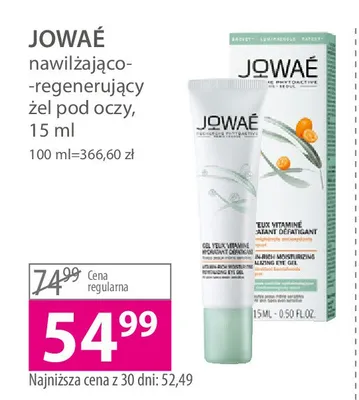 Cena produktu różni się w zależności od wybranego sklepu. Niestety nie posiadamy danych o aktualnych promocjach, jednak wśród archiwalnych ofert Żel pod oczy nawilżająco-regenerujący Jowae kosztuje od 54,99 zł do 59,99 zł.