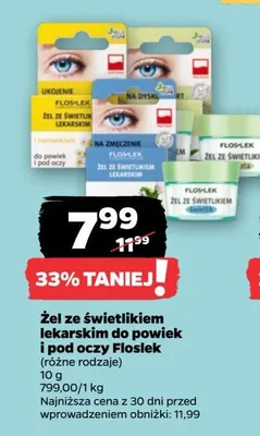 Cena produktu różni się w zależności od wybranego sklepu. Niestety nie posiadamy danych o aktualnych promocjach, jednak wśród archiwalnych ofert Żel pod oczy ze świetlikiem Floslek kosztuje od 5,99 zł do 7,99 zł.