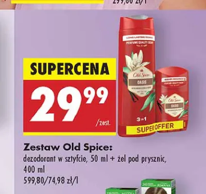 Ile kosztuje 呕el pod prysznic 400 ml + dezodorant sztyft 50 ml Old spice oasis?