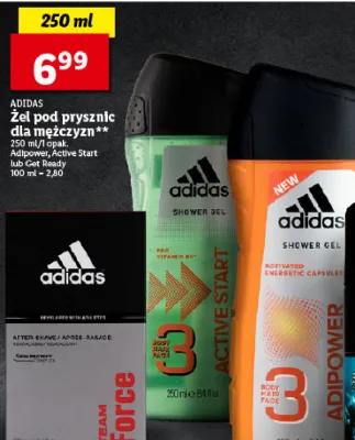 Cena produktu r贸偶ni si臋 w zale偶no艣ci od wybranego sklepu. Niestety nie posiadamy danych o aktualnych promocjach, jednak w艣r贸d archiwalnych ofert 呕el pod prysznic active start Adidas hair & body Adidas cosmetics kosztuje od 6,99 z艂.