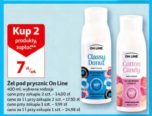 Cena produktu r贸偶ni si臋 w zale偶no艣ci od wybranego sklepu. Niestety nie posiadamy danych o aktualnych promocjach, jednak w艣r贸d archiwalnych ofert 呕el pod prysznic cotton candy On line kosztuje od 7 z艂.