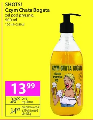 Cena produktu r贸偶ni si臋 w zale偶no艣ci od wybranego sklepu. Niestety nie posiadamy danych o aktualnych promocjach, jednak w艣r贸d archiwalnych ofert 呕el pod prysznic czym chata bogata SHOTS! kosztuje od 13,99 z艂 do 15,99 z艂.
