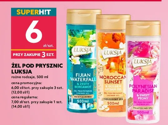 Cena produktu różni się w zależności od wybranego sklepu. Produkt Żel pod prysznic fijian waterfall & zesty bergamot Luksja możesz kupić w promocji już od 9,99 zł do 25,99 zł. Najtańsza oferta, jaką mamy w naszej bazie jest z sieci Carrefour Market. Żel pod prysznic fijian waterfall & zesty bergamot Luksja kosztuje aktualnie 9,99 zł. Zobacz ofertę
