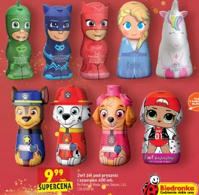 Cena produktu różni się w zależności od wybranego sklepu. Produkt Żel pod prysznic i do kąpieli psi patrol niebieski możesz kupić w promocji już od 13,89 zł do 19,95 zł. Najtańsza oferta, jaką mamy w naszej bazie jest z sieci Hebe. Żel pod prysznic i do kąpieli psi patrol niebieski kosztuje aktualnie 13,89 zł. Zobacz ofertę