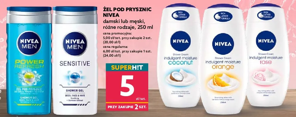 Cena produktu r贸偶ni si臋 w zale偶no艣ci od wybranego sklepu. Niestety nie posiadamy danych o aktualnych promocjach, jednak w艣r贸d archiwalnych ofert 呕el pod prysznic indulgent moisture orange Nivea kosztuje od 5 z艂.