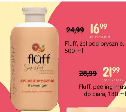 Cena produktu różni się w zależności od wybranego sklepu. Niestety nie posiadamy danych o aktualnych promocjach, jednak wśród archiwalnych ofert Żel pod prysznic kudzu i kwiat pomarańczy Fluff superfood kosztuje od 16,99 zł.