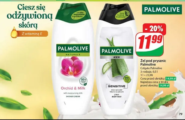 Zastanawiasz się, gdzie kupić i ile kosztuje produkt Żel pod prysznic sensitive Palmolive? Regularnie sprawdzamy, czy jest promocja na ten produkt w Biedronka, Lidl, Kaufland, Auchan, Netto, Makro i innych sklepach. Aktualnie posiadamy 6 ofert promocyjnych na ten produkt. Ceny zaczynają się od 16,49zł!