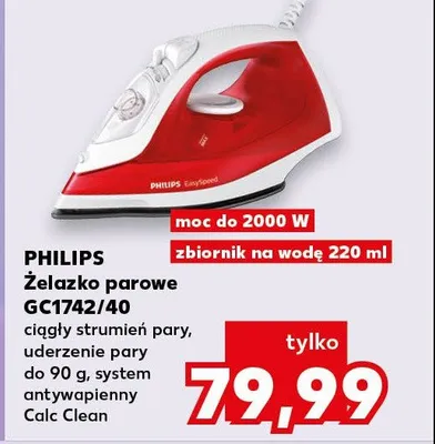 Cena produktu r贸偶ni si臋 w zale偶no艣ci od wybranego sklepu. Produkt 呕elazko gc1742/40 Philips mo偶esz kupi膰 w promocji ju偶 od 199 z艂. Najta艅sza oferta, jak膮 mamy w naszej bazie jest z sieci Selgros. 呕elazko gc1742/40 Philips kosztuje aktualnie 199 z艂. Zobacz ofert臋