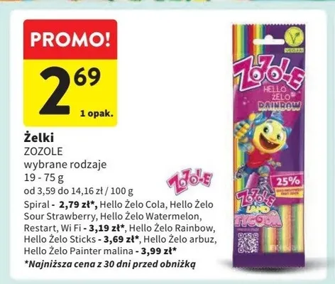 Cena produktu r贸偶ni si臋 w zale偶no艣ci od wybranego sklepu. Niestety nie posiadamy danych o aktualnych promocjach, jednak w艣r贸d archiwalnych ofert 呕elek spiral Zozole kosztuje od 1,49 z艂 do 2,69 z艂.
