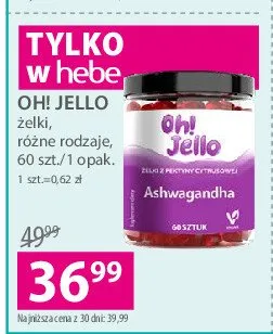 Cena produktu r贸偶ni si臋 w zale偶no艣ci od wybranego sklepu. Niestety nie posiadamy danych o aktualnych promocjach, jednak w艣r贸d archiwalnych ofert 呕elki ashwagandha Oh! jello kosztuje od 36,99 z艂.