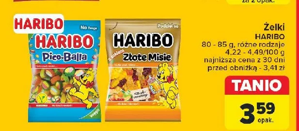 Przeglądaj oferty promocyjne na produkt Żelki Haribo złote misie z sokiem