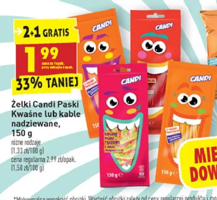 Gdzie można tanio kupić produkt Żelki kable jabłkowe Candi (biedronka)?