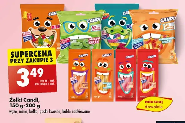Przeglądaj podobne oferty promocyjne do Żelki paski tęczowe truskawka Candi (biedronka)!