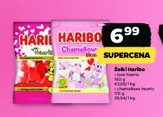 Cena produktu r贸偶ni si臋 w zale偶no艣ci od wybranego sklepu. Produkt 呕elki serca Haribo mo偶esz kupi膰 w promocji ju偶 od 4,49 z艂 do 12,99 z艂. Najta艅sza oferta, jak膮 mamy w naszej bazie jest z sieci Netto. 呕elki serca Haribo kosztuje aktualnie 4,49 z艂. Zobacz ofert臋