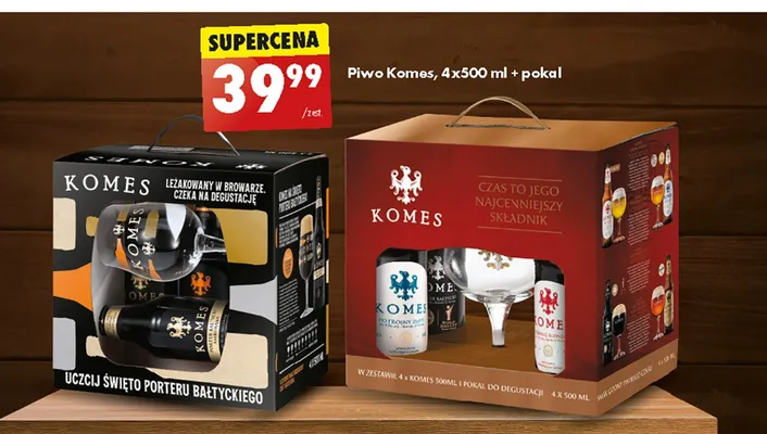 Gdzie można tanio kupić produkt Zestaw 4 piw + pokal Komes porter bałtycki + podwójny ciemny + potrójny złoty + komes poczwórny bursztynowy?