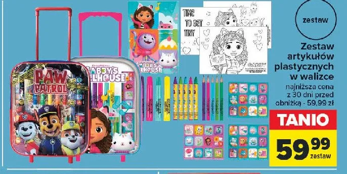 Gdzie mo偶na tanio kupi膰 produkt Zestaw artyku艂贸w plastycznych w walizce koci domek gabi?