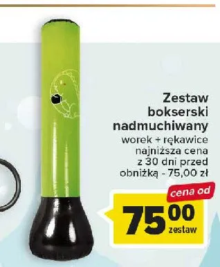 Zastanawiasz si臋, gdzie kupi膰 i ile kosztuje produkt Zestaw bokserski nadmuchiwany? Regularnie sprawdzamy, czy jest promocja na ten produkt w Biedronka, Lidl, Kaufland, Auchan, Netto, Makro i innych sklepach. Aktualnie nie posiadamy ofert promocyjnych na ten produkt.