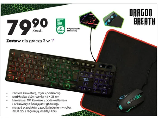 Ile kosztuje Zestaw dla gracza dragon breath: klawiatura + mysz + podk艂adka?
