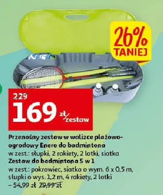 Cena produktu r贸偶ni si臋 w zale偶no艣ci od wybranego sklepu. Produkt Zestaw do badmintona 5w1 Enero mo偶esz kupi膰 w promocji ju偶 od 27,99 z艂. Najta艅sza oferta, jak膮 mamy w naszej bazie jest z sieci Auchan. Zestaw do badmintona 5w1 Enero kosztuje aktualnie 27,99 z艂. Zobacz ofert臋