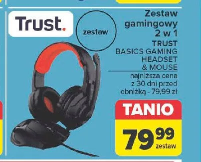 Cena produktu r贸偶ni si臋 w zale偶no艣ci od wybranego sklepu. Niestety nie posiadamy danych o aktualnych promocjach, jednak w艣r贸d archiwalnych ofert Zestaw gamingowy 2w1 s艂uchawki + mysz Trust kosztuje od 79,99 z艂.