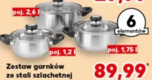 Zastanawiasz si臋, gdzie kupi膰 i ile kosztuje produkt Zestaw garnk贸w? Regularnie sprawdzamy, czy jest promocja na ten produkt w Biedronka, Lidl, Kaufland, Auchan, Netto, Makro i innych sklepach. Aktualnie posiadamy 6 ofert promocyjnych na ten produkt. Ceny zaczynaj膮 si臋 od 99,99z艂!