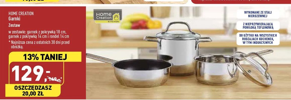 Przegl膮daj podobne oferty promocyjne do Zestaw garnk贸w z pokrywkami 18 cm + 14 cm + rondel 14 cm HOME CREATION KITCHEN!