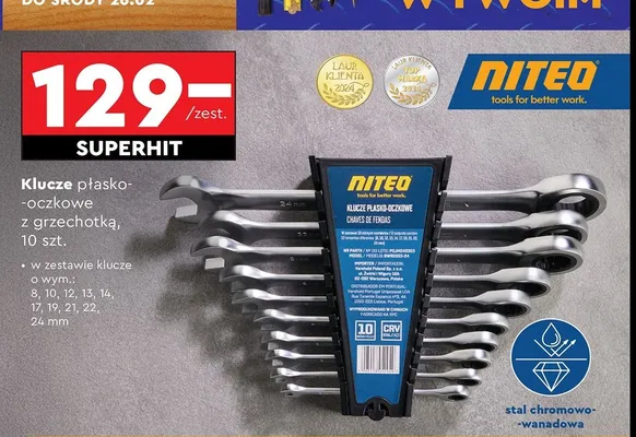 Przegl膮daj podobne oferty promocyjne do Zestaw kluczy p艂asko-oczkowych z grzechotk膮 Niteo tools!
