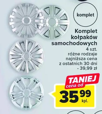 Cena produktu r贸偶ni si臋 w zale偶no艣ci od wybranego sklepu. Niestety nie posiadamy danych o aktualnych promocjach, jednak w艣r贸d archiwalnych ofert Zestaw ko艂pak贸w samochodowych kosztuje od 35,99 z艂.