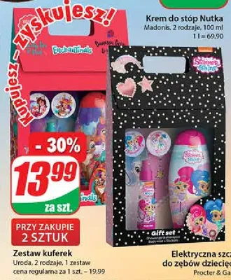 Cena produktu r贸偶ni si臋 w zale偶no艣ci od wybranego sklepu. Niestety nie posiadamy danych o aktualnych promocjach, jednak w艣r贸d archiwalnych ofert Zestaw kosmetyk贸w w kuferku enchantimals: 偶el pod prysznic 250 ml + mgie艂ka 110 ml kosztuje od 13,99 z艂 do 19,99 z艂.
