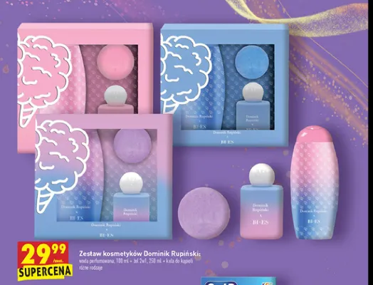 Ile kosztuje Zestaw kosmetyków w pudełku dominik rupiński: żel 2w1 250 ml + woda perfumowana 100 ml + kula do kąpieli Bi-es zestawy?