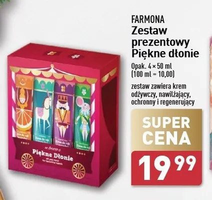 Cena produktu r贸偶ni si臋 w zale偶no艣ci od wybranego sklepu. Niestety nie posiadamy danych o aktualnych promocjach, jednak w艣r贸d archiwalnych ofert Zestaw krem贸w do r膮k Farmona herbal care kosztuje od 19,99 z艂.