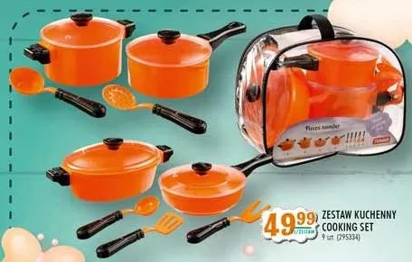 Cena produktu r贸偶ni si臋 w zale偶no艣ci od wybranego sklepu. Niestety nie posiadamy danych o aktualnych promocjach, jednak w艣r贸d archiwalnych ofert Zestaw kuchenny cooking set kosztuje od 49,99 z艂.